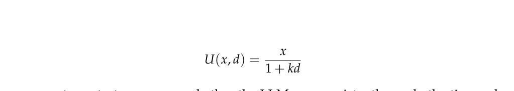 쌍곡선 효용 모델은 현재 가치 x, 시간 지연 d, 할인율 k로 구성된다.