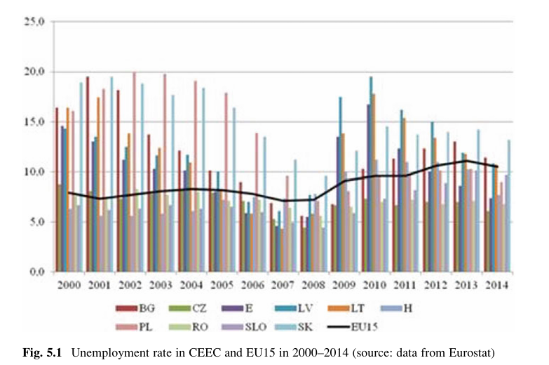 - 이주 흐름 분석에 이어 CEEC 국가의 실업률 변화를 다음과 비교함: